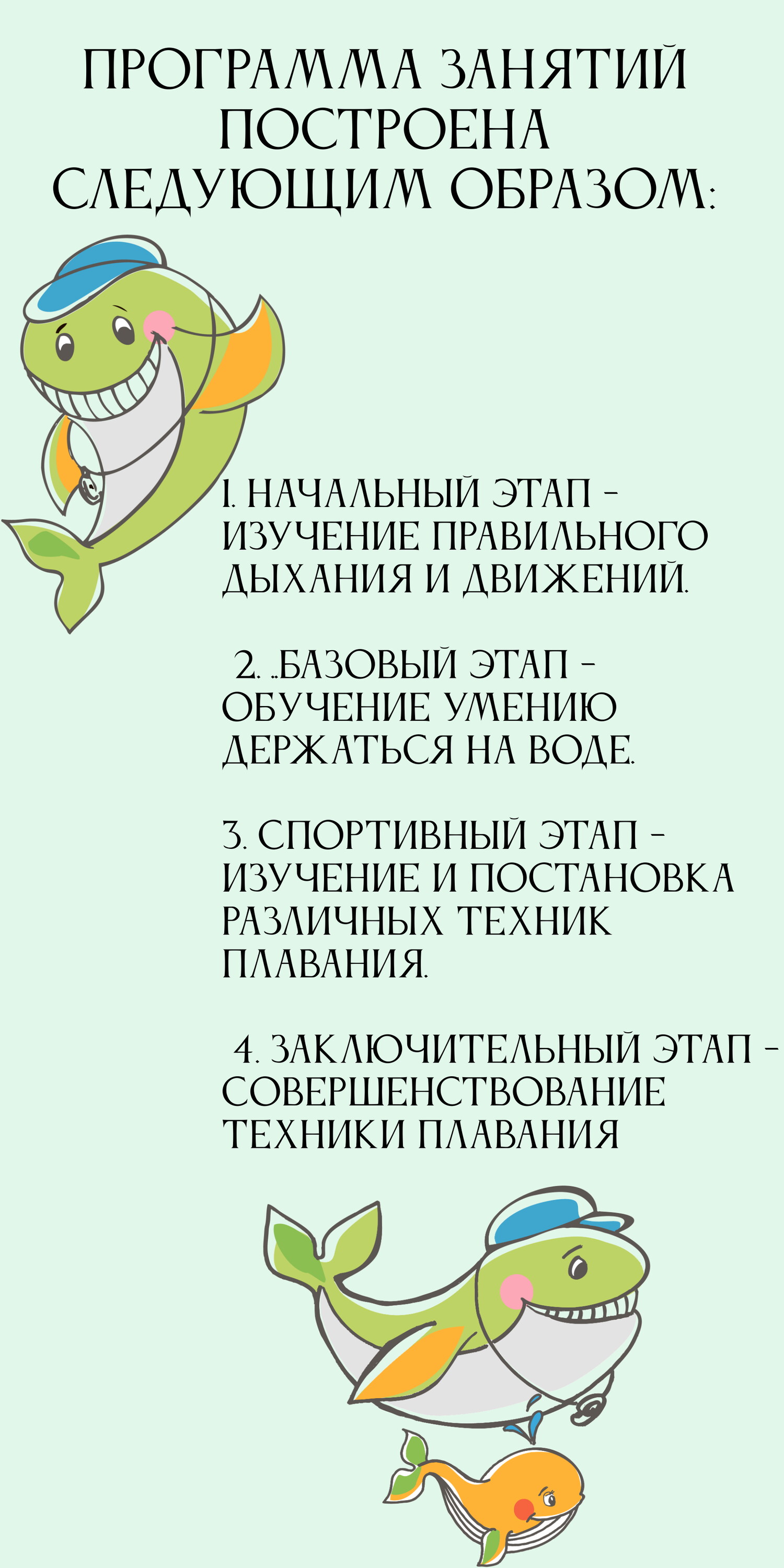 Мы обучаем плаванию. Занятия спортом оказывают разностороннее влияние на человека: они не только повышают выносливость организма, но и формируют характер, развивают уверенность в себе. От физических нагрузок отчасти зависит работоспособность мозга.
